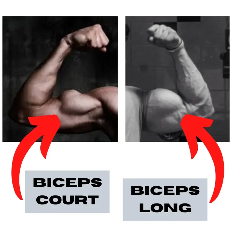 Si un muscle « long » présente un haut potentiel de développement musculaire (car ayant tout simplement + de matière développable), un muscle « court » connait un potentiel d’hypertrophie (grosseur) bien plus réduit, sur le papier. Il est tout de même à noter qu’un muscle « long » peut aussi parfois avoir du mal à bien se développer (assez rarement, cela dit), et qu’un muscle « court » peut présenter un rendu physique très esthétique (notamment lorsqu’il est contracté).